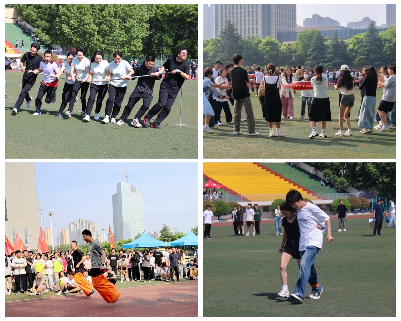 旋风跑比赛无疑是每年运动会上最激动人心的项目之一,每支队伍的八名选手双手紧握长杆,犹如一堵坚实的人墙,齐心大步向前冲。比赛中,信息工程学院的一名学生中途意外摔倒掉队,他顾不上查看自身情况,而是迅速调整跟上队伍,并出色地完成了比赛。赛后,他们的队长李嘉说:“我们每天在一起训练,感情也特别好。这次比赛虽然发生了一些小意外,但我们也收获了友谊和合作的成果。”