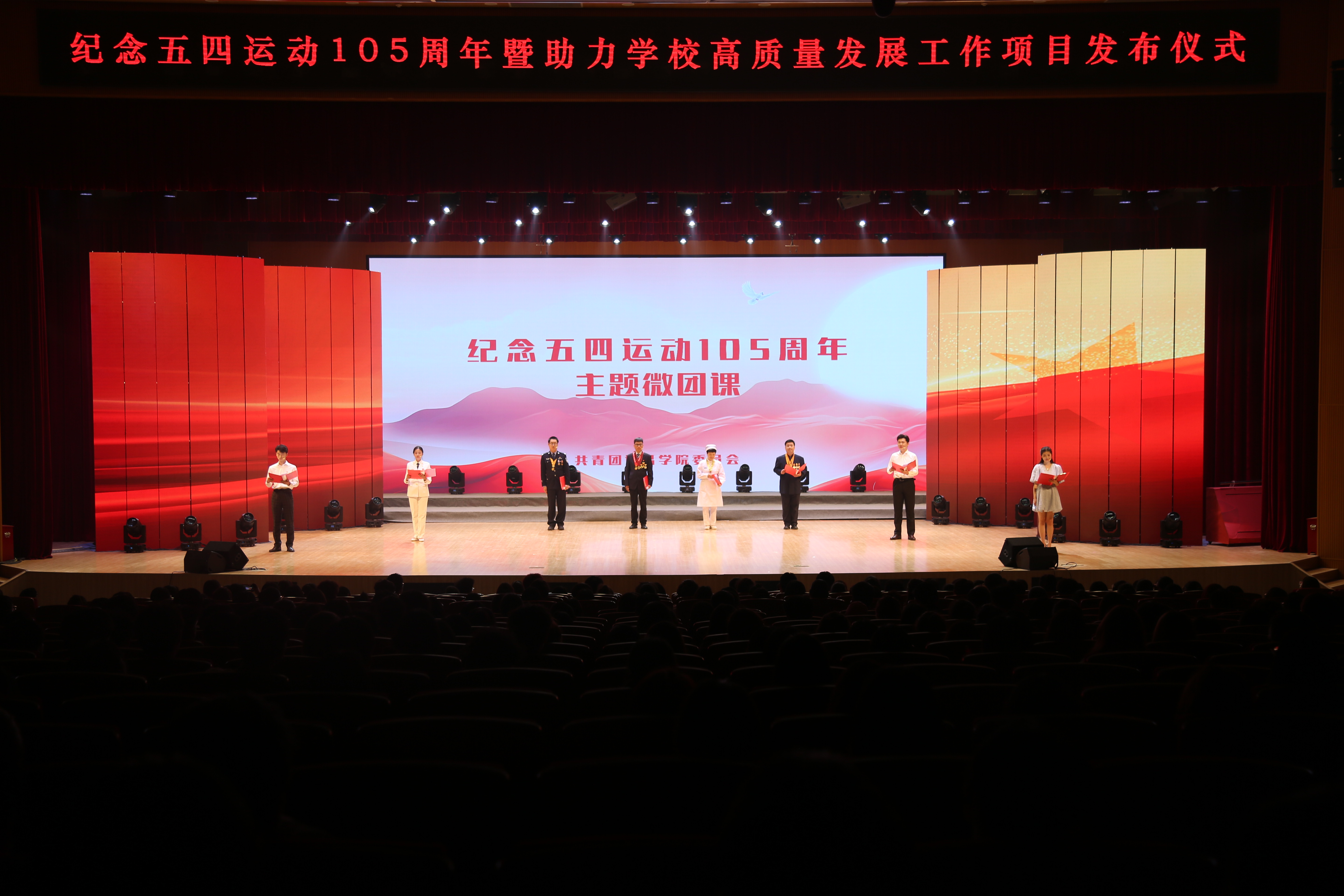 4月29日晚,365官网在智慧大楼多功能演播厅举行纪念“五四运动”105周年暨助力学校高质量发展工作项目发布仪式。校党委副书记孙海,教务处、科研处、课程中心、校团委等相关职能部门负责人,各二级学院(社区)党委书记、副书记、团委负责人和团员青年代表近1000余名师生参加活动。