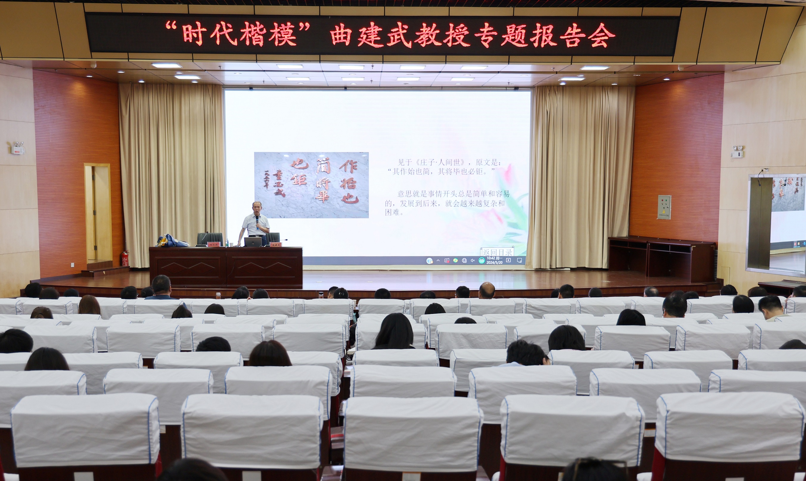 5月20日,“时代楷模”“最美奋斗者”“全国道德模范”“万人计划教学名师”“全国优秀教师”,大连海事大学马克思主义学院二级教授、博士生导师曲建武教授应邀来到365官网,分别为365官网师生作《做好大学生人生成长的指导者和引路人》《涵养崇高师德 倾力铸魂育人》专题报告。学校600余名师生参加报告会。