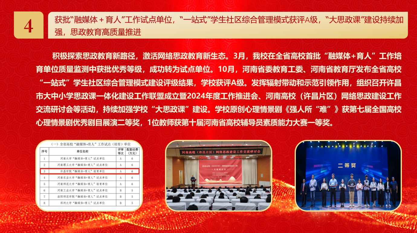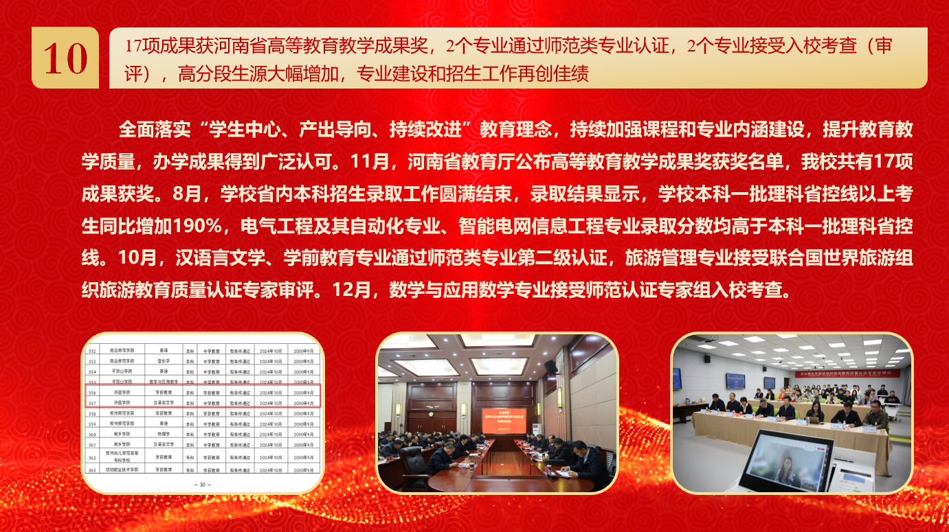 2024年是中华人民共和国成立75周年,也是学校深入学习贯彻党的二十大和二十届三中全会精神,锚定富有特色的高水平应用型大学建设目标,以高质量党建引领事业高质量发展,取得一系列新成效新突破的一年。为回顾一年来学校事业发展成就,凝聚团结奋进新征程的强大力量,党委宣传部(新闻中心、校报编辑部)组织开展2024年度十大新闻事件评选活动。经过初选推荐、网络投票、综合评议等环节,最终评选出bat365官网登录入口2024年度十大新闻事件,现予以发布。