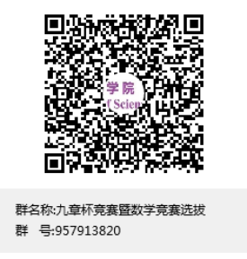 即日起至4月30日23点59分,使用微信扫描第一个二维码填写报名信息,使用QQ扫描第二个二维码加入九章杯竞赛QQ群,及时获取竞赛通知。本次竞赛不收取报名费。