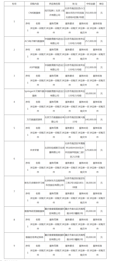 收费标准:参照国家计委《招标代理服务收费暂行办法》(计价格[2002]1980号)文件及国家发改办价格[2003]857号文件规定的标准向成交供应商收取。招标代理服务收费按差额定率累进法计算。包1:5250元;包2:3855元;包3:3480元;包4:900元;包5:2100元;包6:1947元;包7:570元;包8:300元;包9:450元。