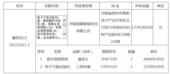1、采购项目编号:豫财招标采购-2022-987