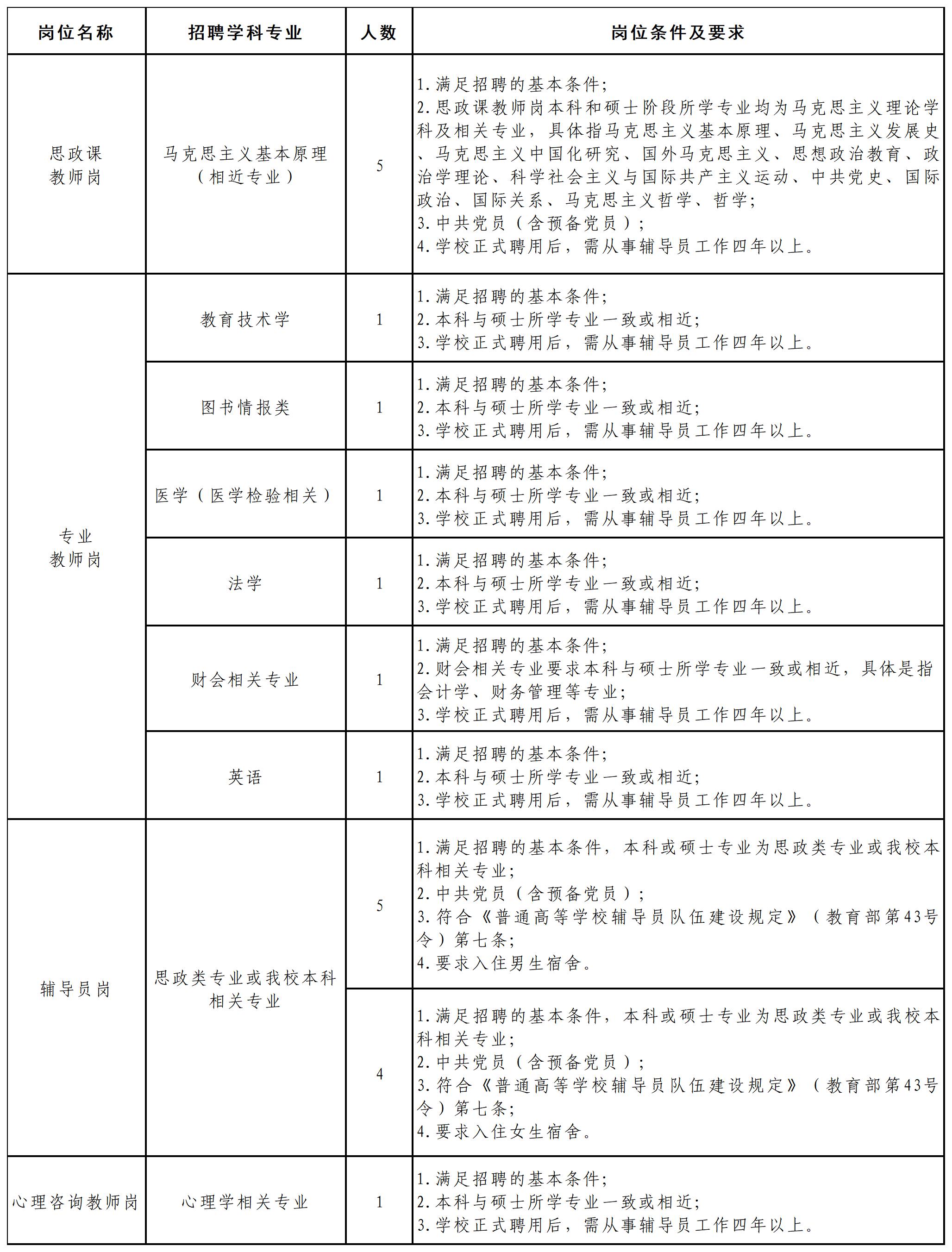 根据学校专业技术人员岗位空缺情况和学校发展需要,拟面向社会公开招聘21名硕士研究生,详见附件《bat365官网登录入口2023年公开招聘工作人员一览表》。