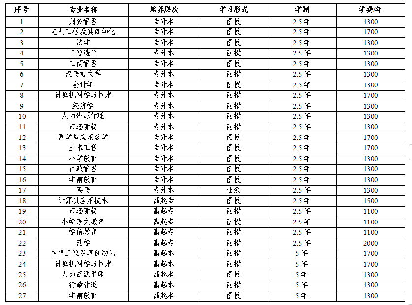 一、bat365官网登录入口2024年成人高等教育招生专业及收费标准一览表