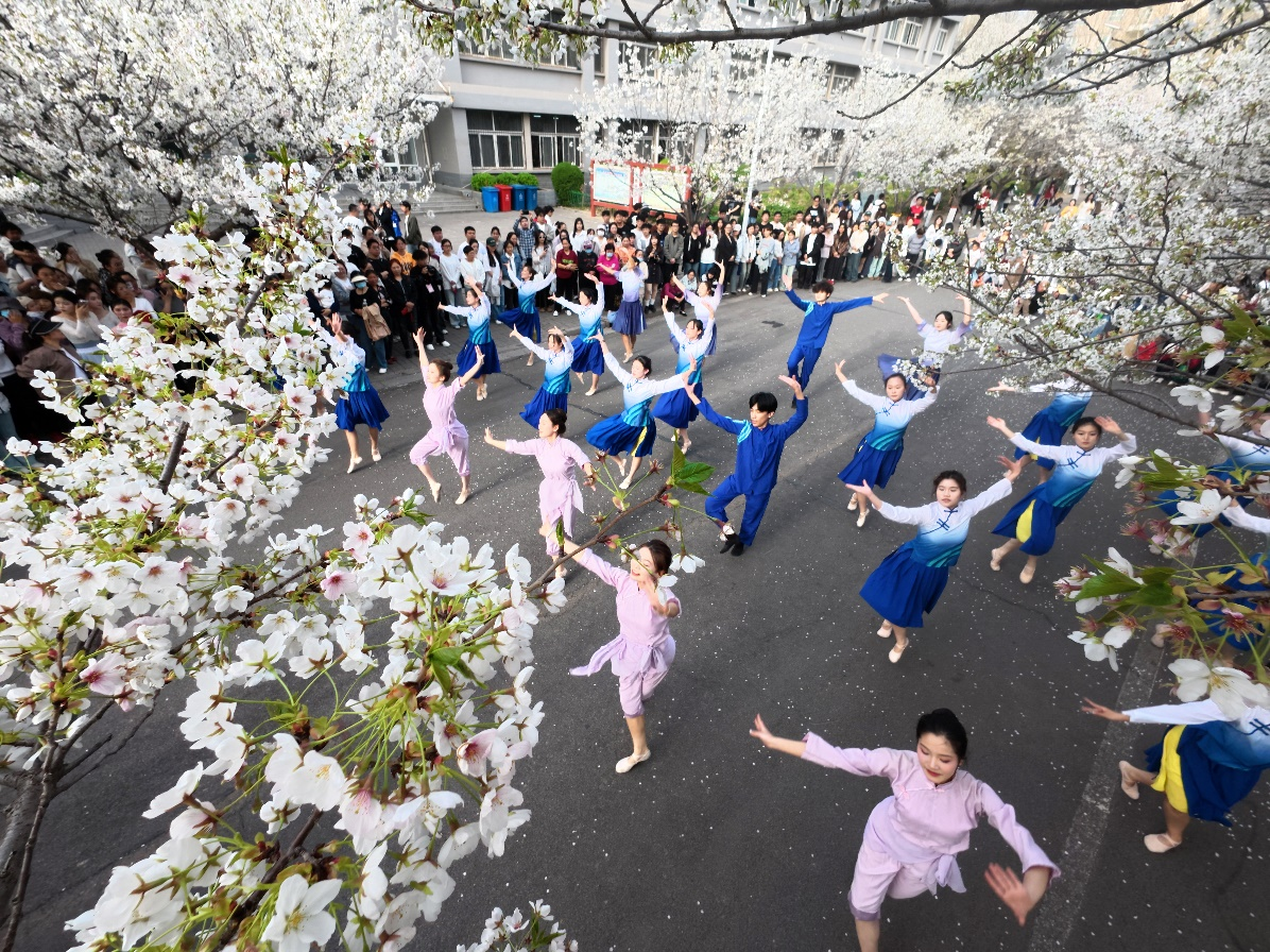 开幕式结束后,校领导和广大师生们一同观赏了丰富多彩的文化活动。《樱歌漫舞》《樱韵声华》等歌舞快闪节目,通过歌曲串烧的旋律、舞蹈表演的灵动以及合唱的和谐,生动地演绎出青春的活力与青年的自信,展现了当代大学生昂扬向上的精神面貌;“樱华古韵”国风雅集、“樱香春韵”技艺展示等活动将汉服走秀、社火表演古今融合,展示了中华优秀传统文化的独特魅力和创意传承;“樱间拾趣”创意手作、“樱漫溢彩”妆容设计、“樱香本草”中药集市等活动则以樱花作引,由各学院学生结合专业特点,制作樱花树脂、樱花书签、樱花美食等周边产品,彩绘樱花妆容、制作中药香囊,运用3D打印技术现场打印樱花模型,在提升活动参与度的同时,充分展现了大学生的专业基础、实践能力和综合素质。