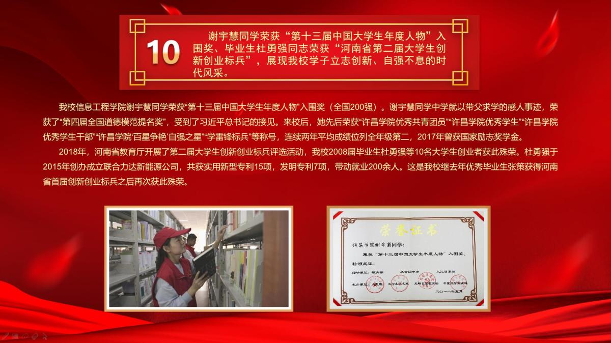 一年来,365官网高举习近平新时代中国特色社会主义思想伟大旗帜,认真贯彻落实党的十九大精神,围绕建设富有特色的高水平应用型大学的目标,坚持内涵式发展、高质量发展,各项事业发展再上新台阶。为总结回顾一年来的发展成就,进一步激发广大师生干事创业的奋斗热情,凝聚改革发展的强大动力,校党委宣传部(新闻中心)开展了bat365官网登录入口2018年度十大新闻事件评选活动。