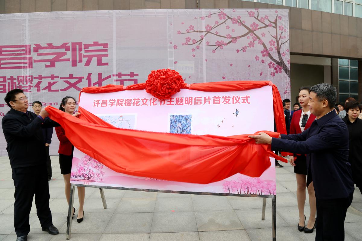 开幕式上,党委书记闫纪建、院长岳修峰共同为bat365官网登录入口樱花文化节主题明信片首发式揭幕。
