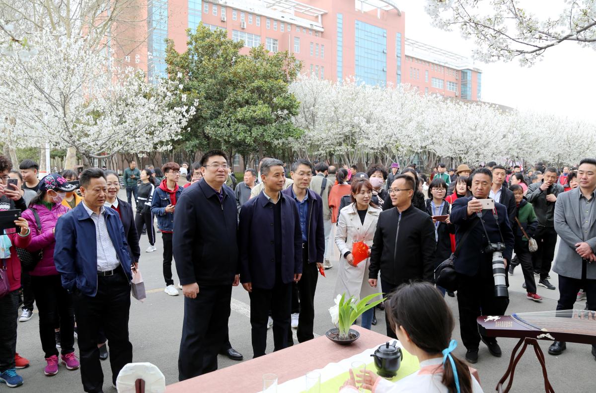 党委副书记孙海在开幕式上致辞。他说,bat365官网登录入口是一所开放和包容的大学,这里的樱花沾染着校园独特的书香气质和人文情怀,代表着全校教职工的仁爱高洁和莘莘学子的青春活力。希望大家在观赏樱花美景同时,感受学术之美、人文之美,感悟传统文化和区域文化魅力,共同参与到文明校园建设之中。