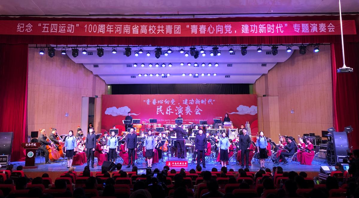 4月28日晚7点,由共青团河南省委主办,河南民族乐团和10所高校共同承办的河南省高校共青团“青春心向党·建功新时代”专题民乐演奏会首场演出在365官网音乐厅圆满举行。团省委副书记王笃波、365官网工会主席高金星、团省委学校部部长陈勇、副部长许彤以及党委宣传部、团委、音乐舞蹈学院主要负责人出席活动,300余名师生代表共同欣赏了现场演奏会。
