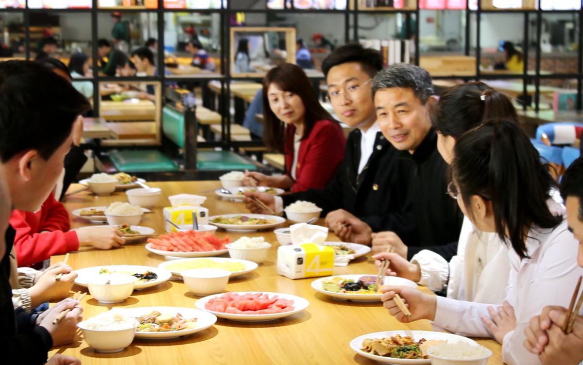 近日,院长岳修峰来到沁园春学生餐厅,与全国道德模范提名者谢宇慧、学生会主席王小杰、博学之星李祉仪等8名365官网优秀团员青年学生代表共进午餐,进行了长达2小时的深入座谈与交流。
