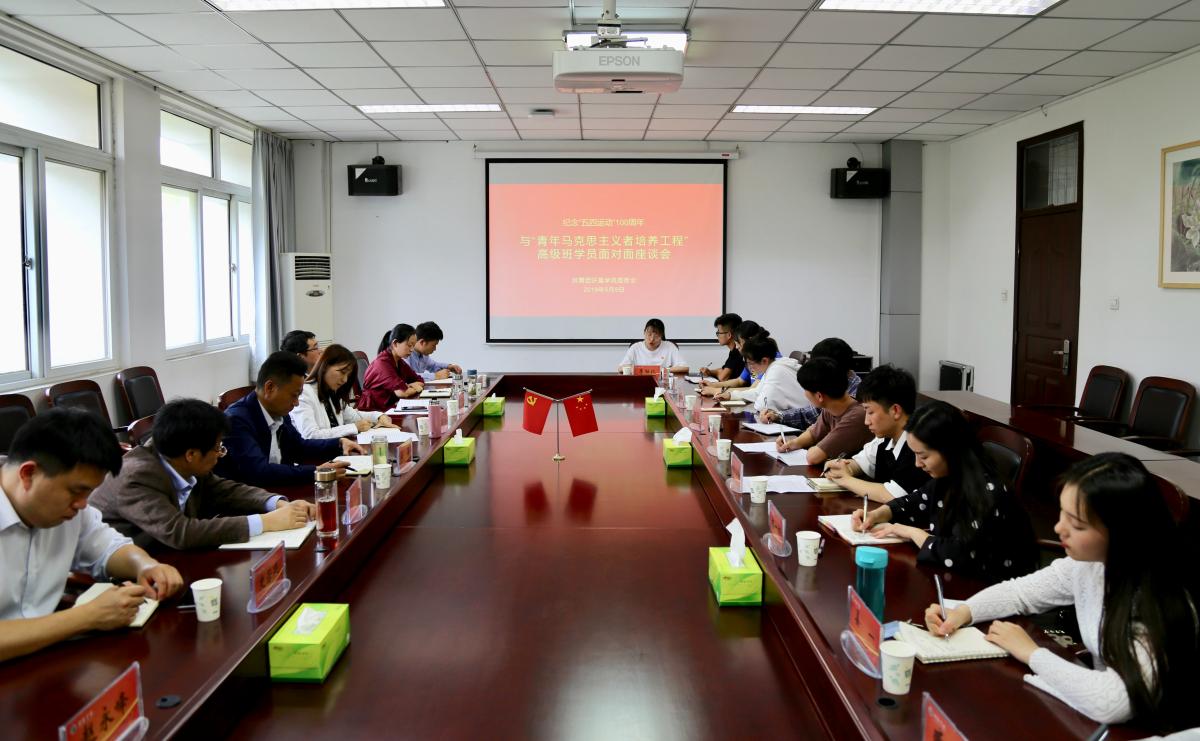 5月9日下午,365官网纪念“五四运动”100周年暨第三届“青年马克思主义者培养工程”高级班学员面对面座谈会在办公楼第四会议室圆满举行。校党委副书记孙海出席会议,党委组织部、宣传部、团委、马克思主义学院相关负责人及13名高级班优秀学员参加会议。会议由团委书记谢依楠主持。