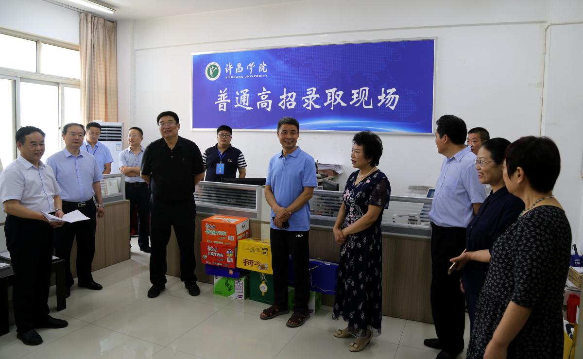 7月16日,校级领导闫纪建、岳修峰、罗凤英、郭涛、高金星带领相关部门负责人,前往学校招生录取大厅、门岗值班处、北大门广场、学生宿舍楼等地看望慰问暑期坚守工作岗位的工作人员,并送去了慰问品。