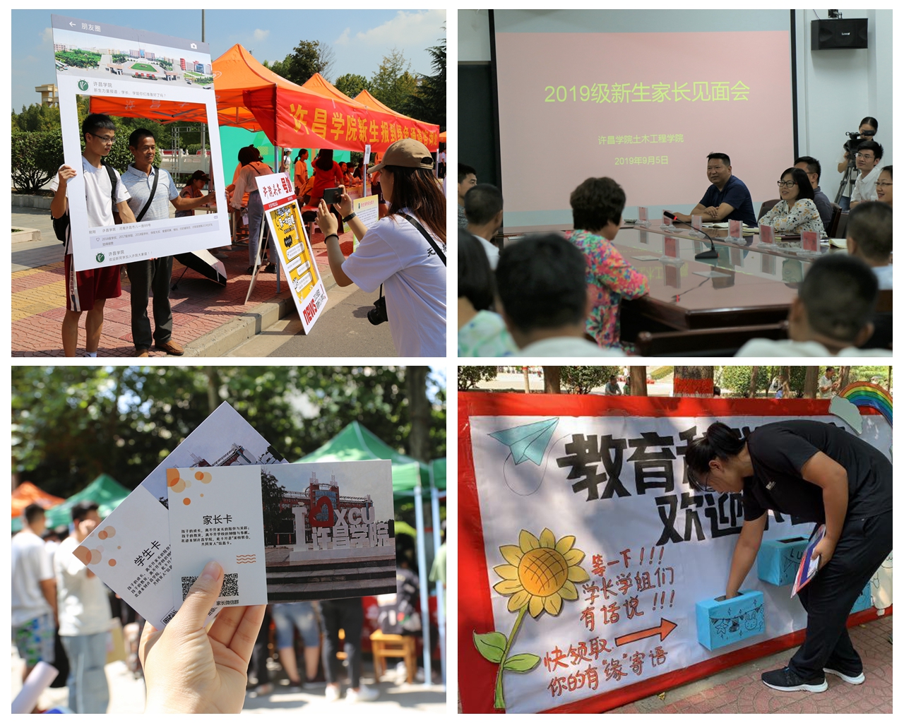 信息工程学院在迎新期间为每一位新生及新生家长准备了迎新学生卡和家长卡,卡片以明信片的形式呈现,上面印有学校风景,同时还印有辅导员以及下沉基层组织的学生党员、干部联系方式、家长微信群二维码等信息,使家长和学校之间更好地沟通,方便家长了解学生在校的学习生活情况。家校携手共同助力19级新生尽快融入大学生活。