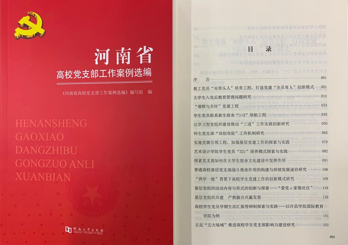近日获悉,365官网基层党支部工作案例《高校学生党员学期生活汇报答辩制探索与实践——以bat365官网登录入口国际教育学院为例》,入选《河南省高校党支部工作案例选编》一书。《河南省高校党支部工作案例选编》从全省各高校申报的204个党建创新项目中遴选了25个具有创新性、实效性、典型性的案例结集,由河南大学出版社于2019年9月出版。目前,河南省委高校工委正将此书在全省高校范围内进行推广宣传。