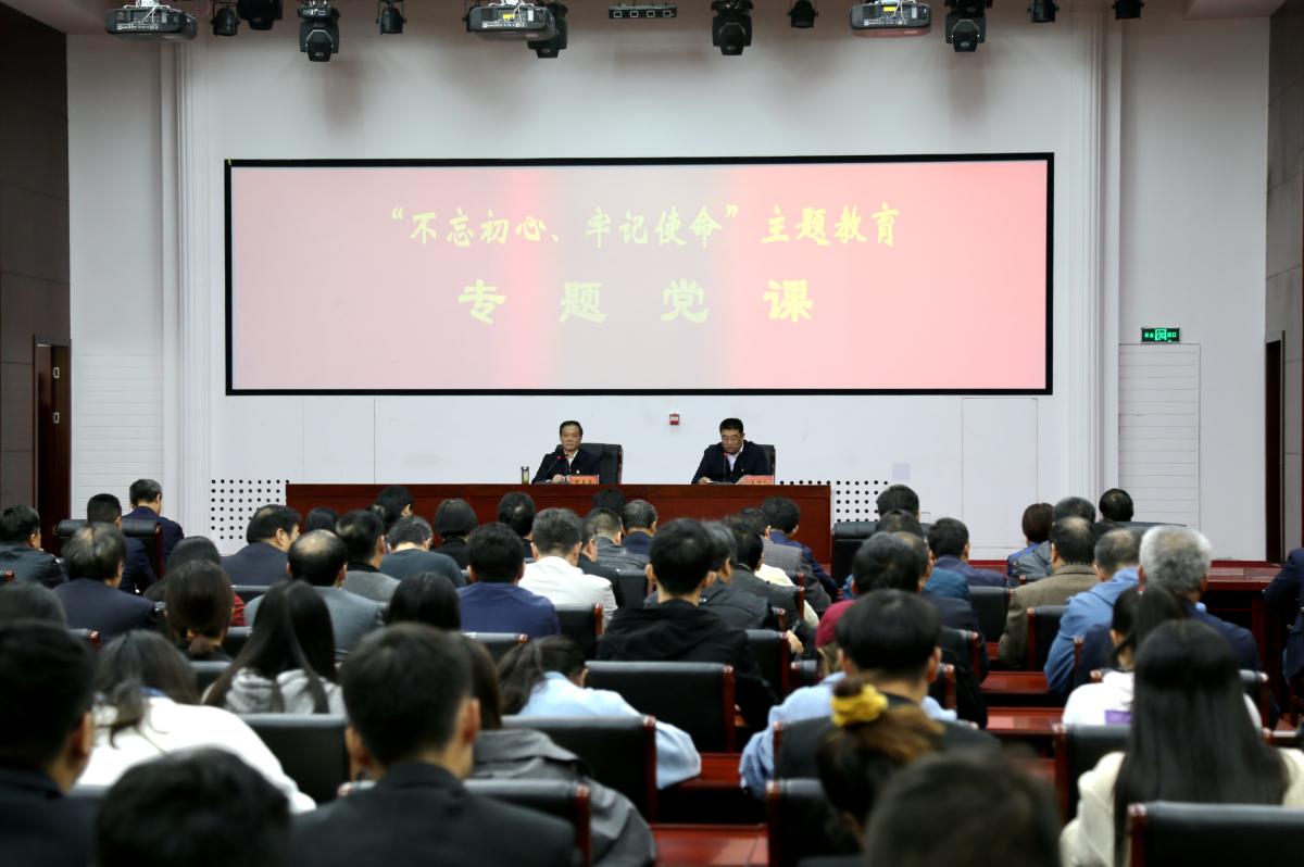10月17日下午,许昌市委书记胡五岳在365官网创新创业学院学术会议中心,为广大党员干部和师生带来一堂生动精彩的“不忘初心、牢记使命”主题教育专题党课。365官网党委书记闫纪建主持。