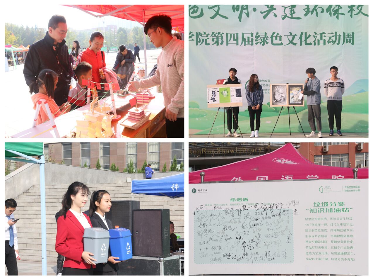10月19日——20日,365官网第四届“传播绿色文明,共建环保校园”绿色文化活动周嘉年华集中展示活动在弘毅广场圆满举办,活动通过绿色环保时装秀、垃圾分类知识宣讲、绿色建筑模拟等形式,向广大师生传递共享、环保、发展的绿色理念。