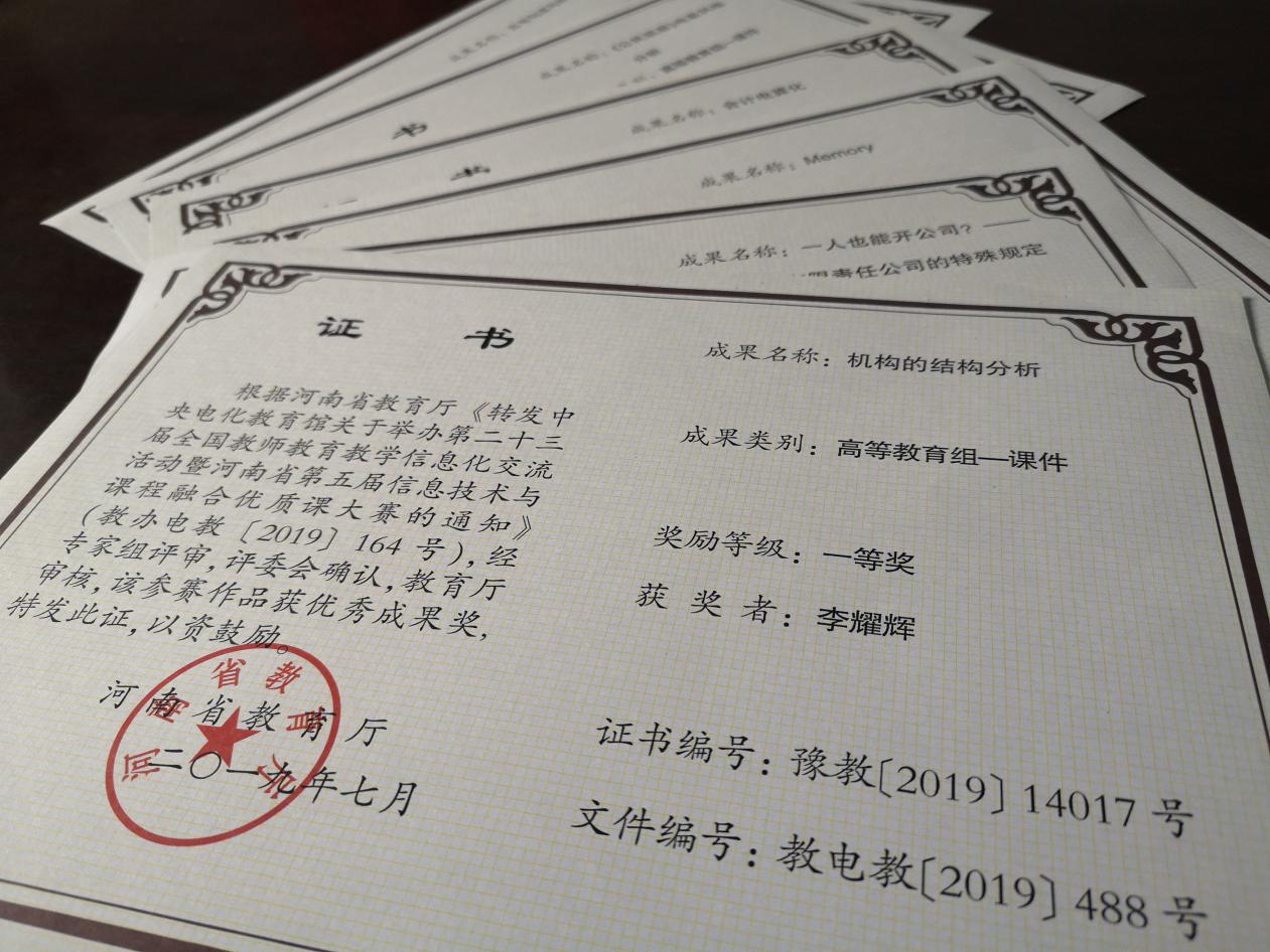 近日,河南省教育厅下发《关于公布第二十三届全国教师教育教学信息化交流活动暨河南省第五届信息技术与课程融合优质课大赛评选结果的通知》(教电教〔2019〕488号),365官网6项作品在大赛中获奖,其中一等奖1项、二等奖3项、三等奖2项。