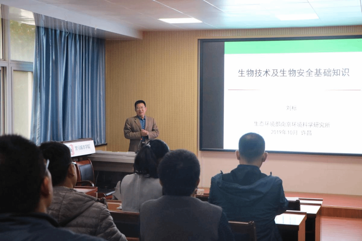 10月25日下午,“转基因作物中外源基因检测及水质检测与控制”学术研讨会在食品与生物工程学院二楼204报告厅举行。 bat365官网登录入口副院长郑直,美国约翰霍普金斯大学研究员、美国德州佰柯生物科技公司董事长王学庆,生态环境部南京环境科学所研究员刘标,许昌市环境监测中心教授级高级工程师肖红等专家出席了本次研讨会。
