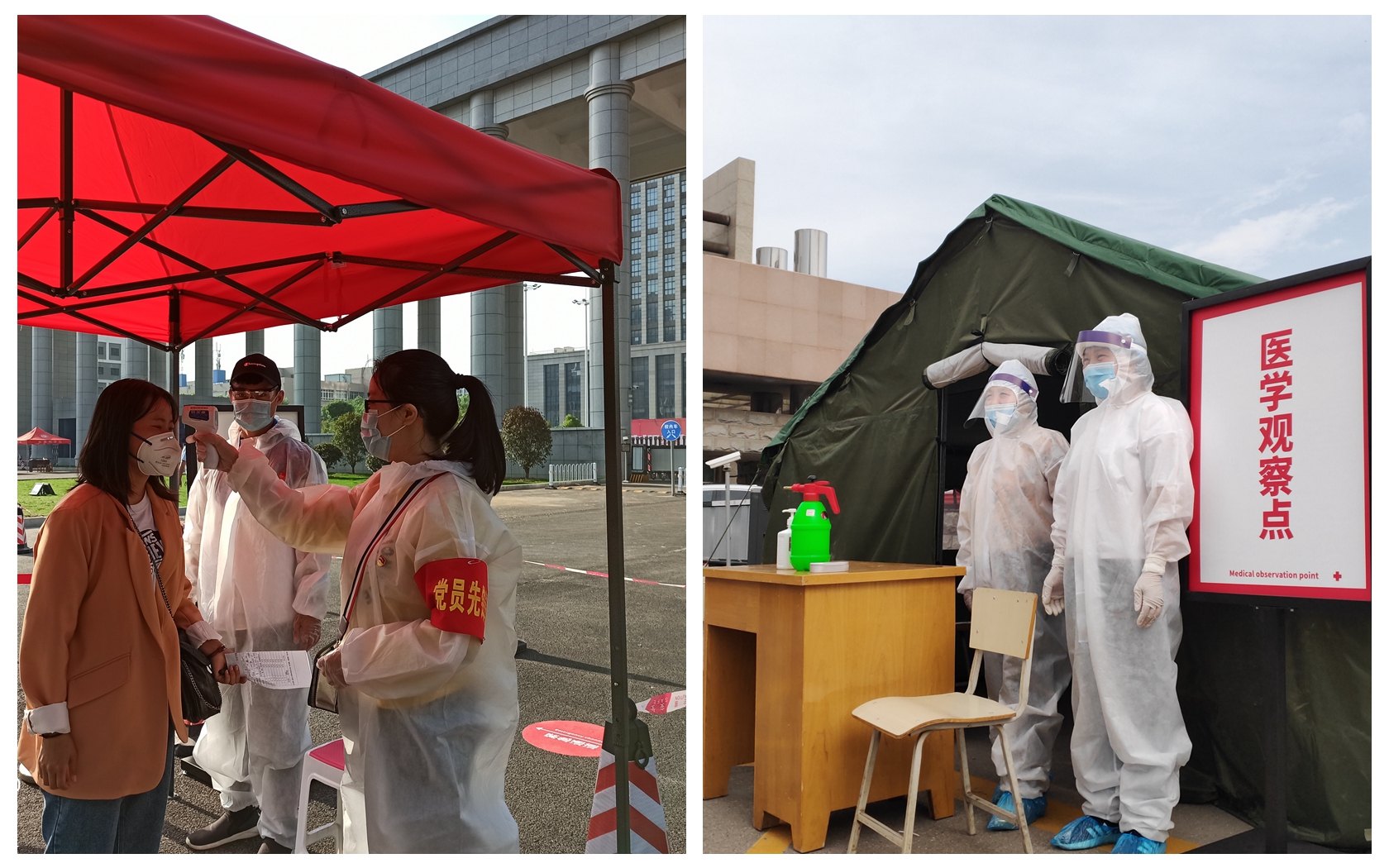 学校提前一周从机关部门、二级学院和教辅单位的党员干部中,遴选出125名志愿者作为学生返校报到服务点“党员先锋岗”人员,进行了专门的培训并成立了4个临时党员先锋岗党支部,分别在测温点负责返校学生的体温检测,在消毒区为返校学生及携带行李进行工作,在等候区做好秩序维护、检查学生防护措施,在高铁站、火车站(汽车站)为返校学生检测登车前体温、消杀行李和协调车辆,并跟随乘车返校学生进行信息登记、测温和车辆消杀。