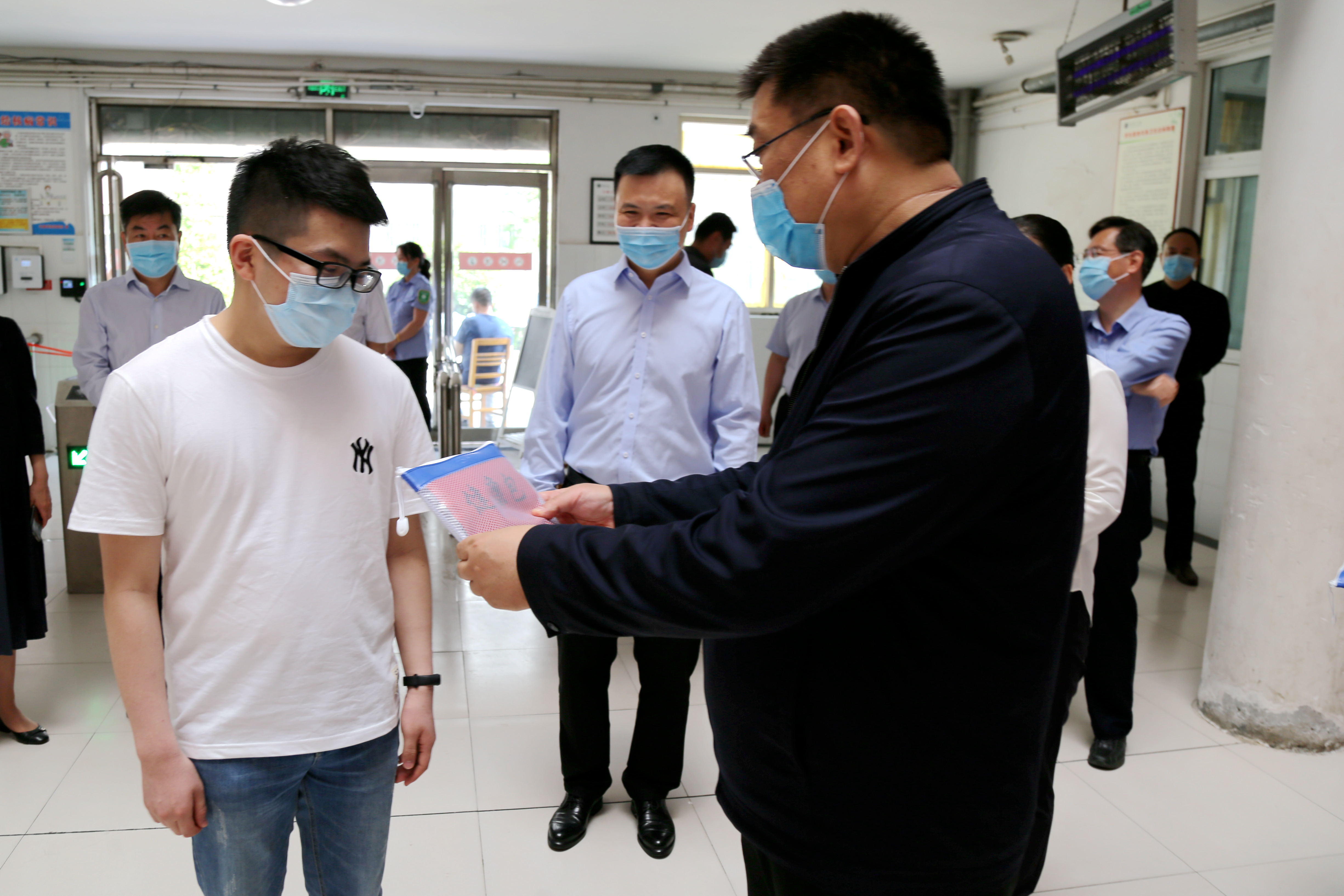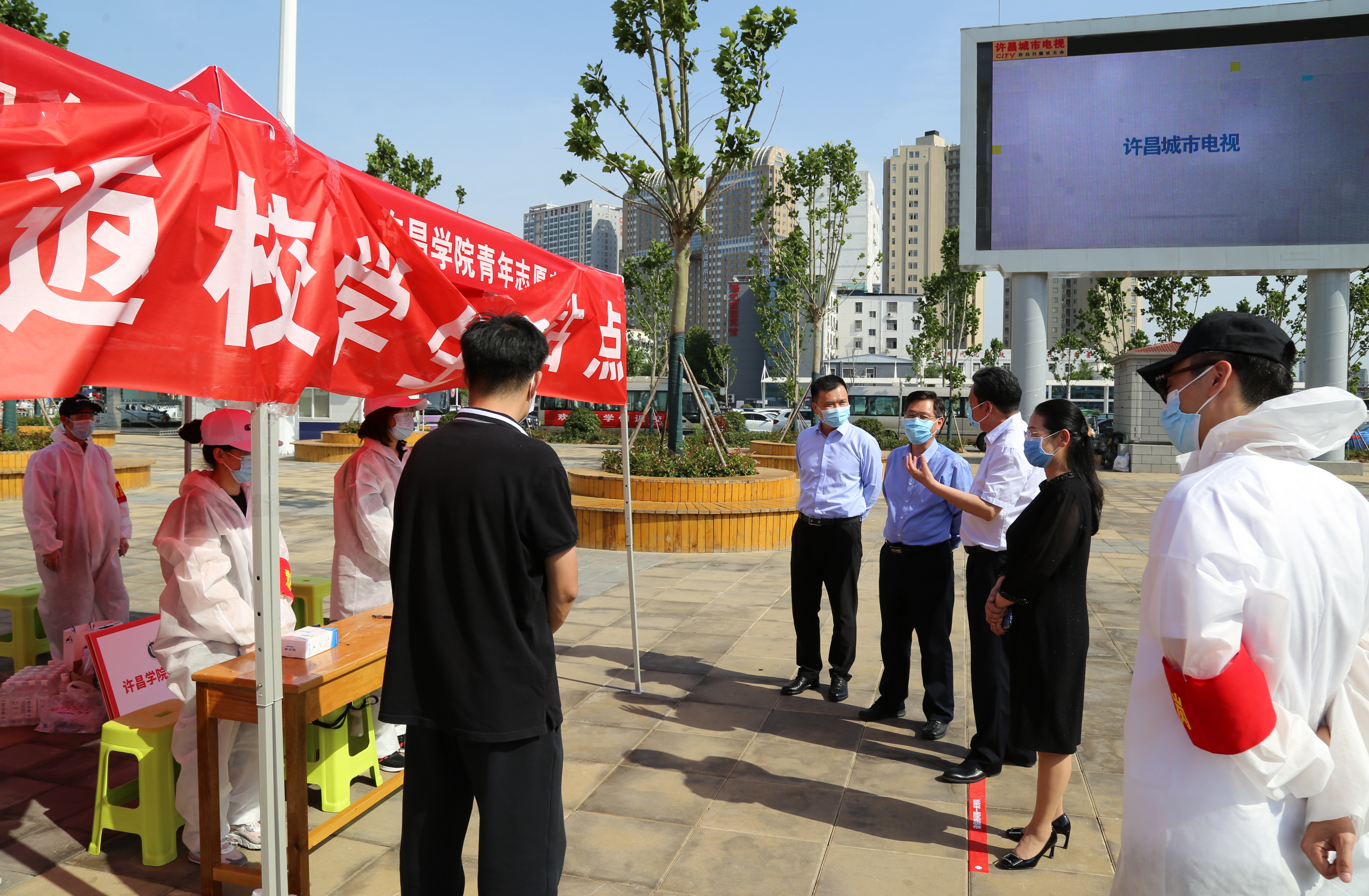 全体校领导来到一线,欢迎同学们“回家”。许昌东城区卫健局带领专班工作人员全程检查指导。校领导、相关部门负责人来到车站接待处、报到点、超市、学生餐厅和宿舍等地查看返校情况。