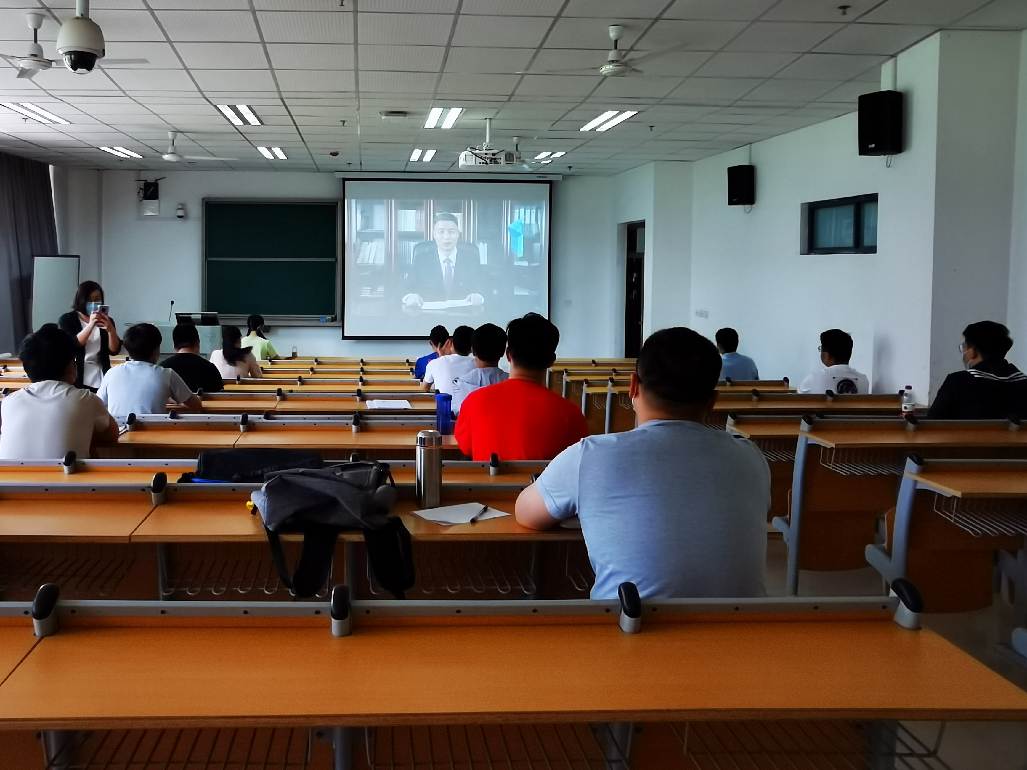 党委书记闫纪建通过视频向全体学生表示了美好祝愿。闫书记围绕全国、河南省和学校新型冠状病毒感染的肺炎疫情形势,强调了关键时刻各级党组织战斗堡垒和共产党员的模范带头作用,进一步坚定师生战胜疫情的信心和决心。院长岳修峰通过视频对同学们返回课堂表示了热烈欢迎。岳院长简要介绍了学校在抗击疫情和组织教学上的各种举措,并围绕学校整体工作、学生管理、延期复学教学等,向同学们介绍了学校复学整体工作的安排部署情况。副院长高金星介绍了学校疫情防控安排和具体措施,强调疫情防控警报一天不解除,防控工作一刻不放松,要确保师生生命安全和身体健康,确保学校安全稳定。