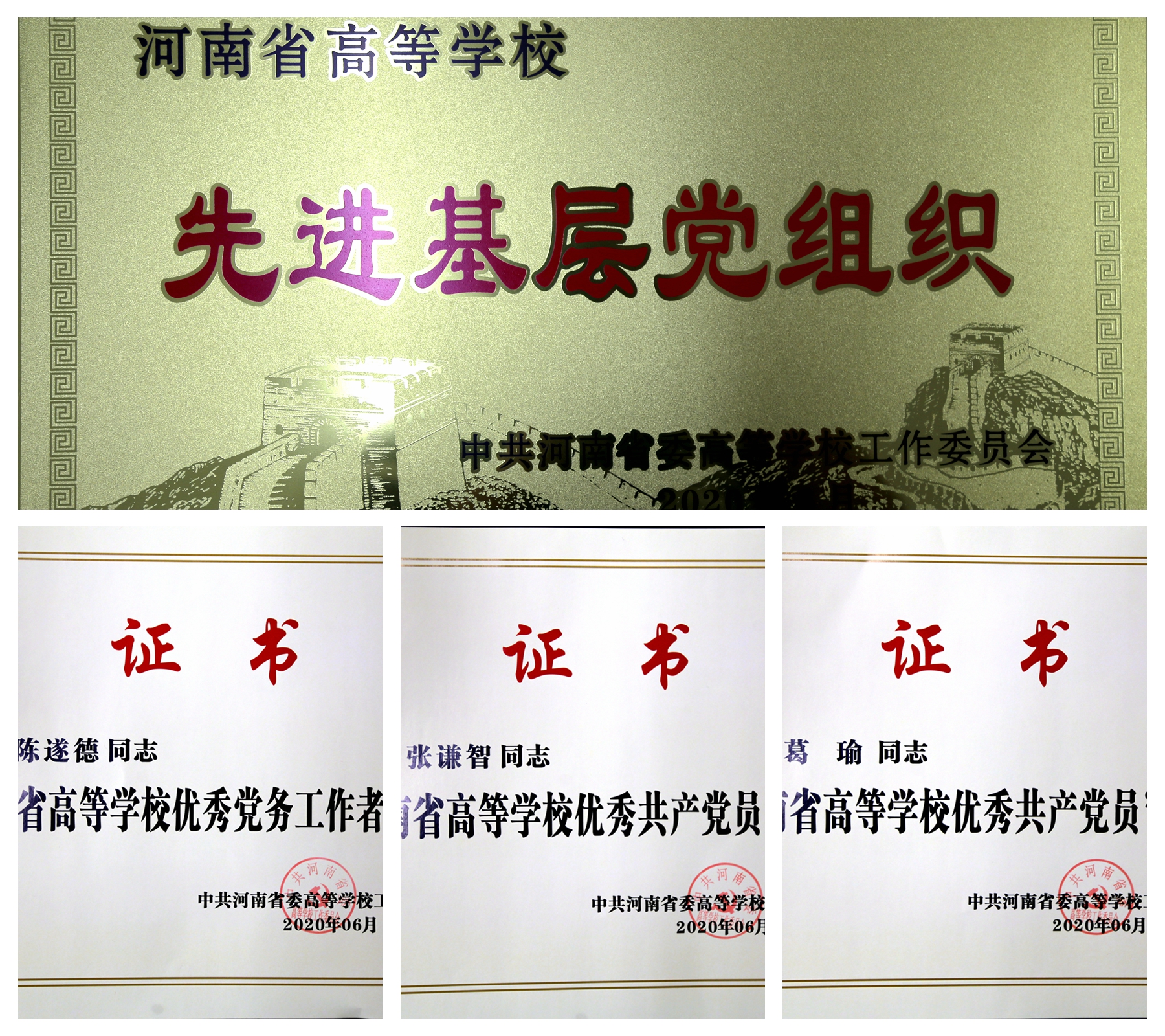 其中,后勤管理服务中心党委和外国语学院党委被授予“河南省高等学校先进基层党组织”荣誉称号,张谦智同志和葛瑜同志被授予“河南省高等学校优秀共产党员”荣誉称号,陈遂德同志被授予“河南省高等学校优秀党务工作者”荣誉称号。