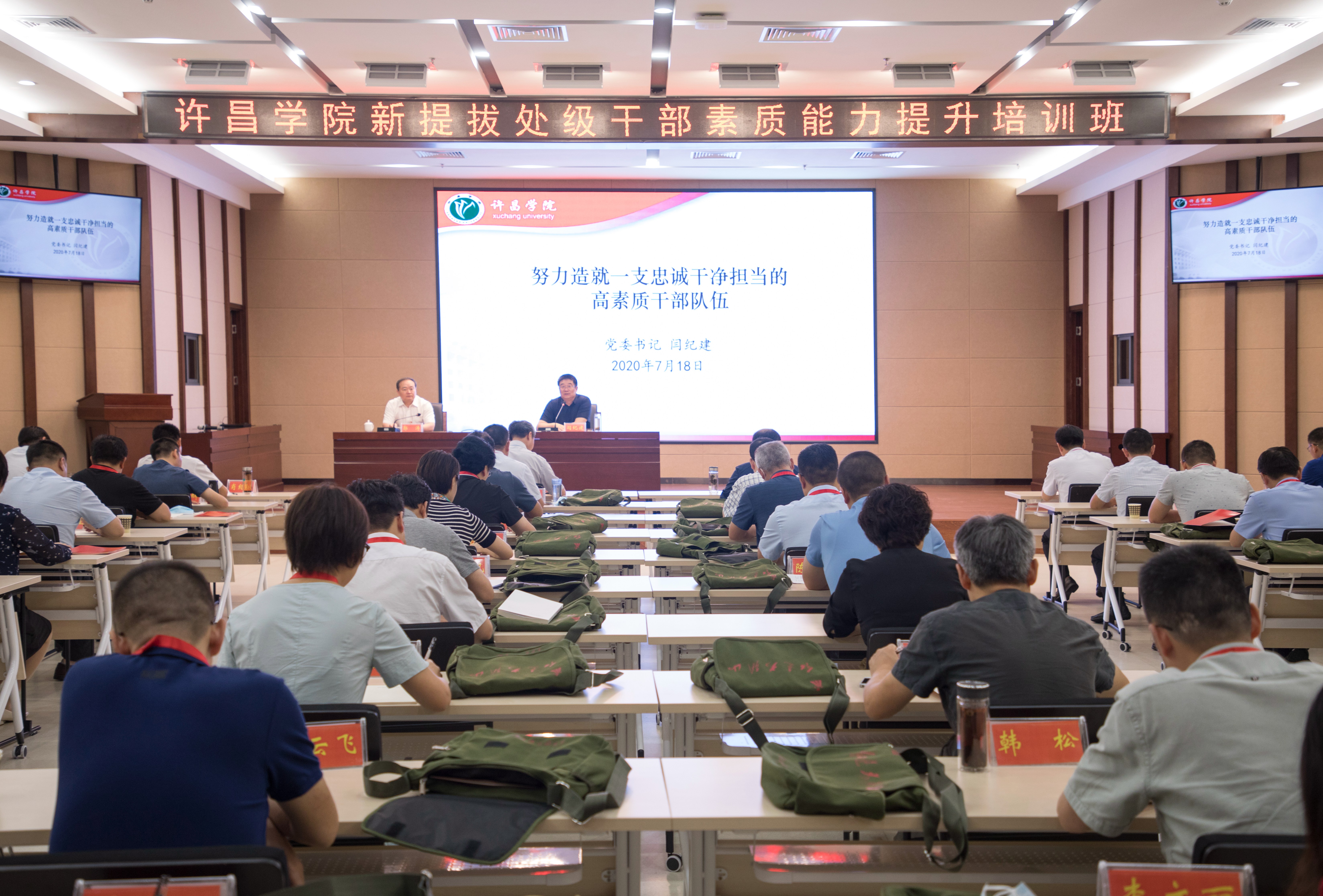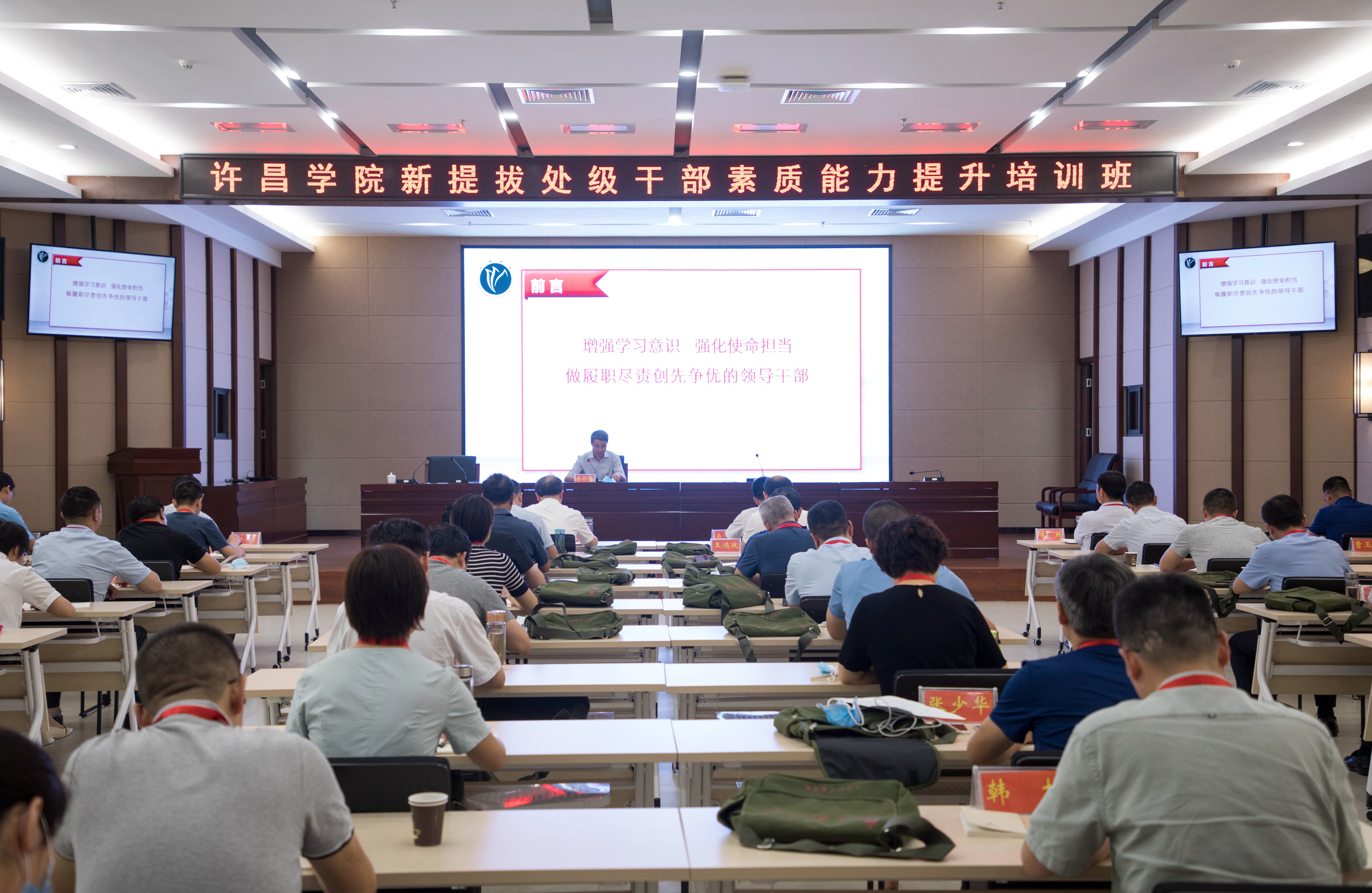 培训期间,学校党委书记闫纪建作了题为《努力造就一支忠诚干净担当的高素质干部队伍》的专题报告。闫书记的报告从习近平总书记关于加强干部队伍建设的重要论述,高校中层领导干部的角色定位,领导干部的素质要求,以及学校中层领导干部如何更好地开展工作四个方面展开。闫书记指出学校的中层领导干部是学校改革发展所依靠的骨干和中坚力量,中层领导干部在学校改革发展中的职能作用一是作为学校战略的重要参与者,对学校决策起到参谋作用;二是作为部门、单位的管理者,对部门或单位工作起到领导作用;三是作为上级决策部署的执行者,对学校事业发展起着推动作用;四是作为重要的联络者,在学校领导和广大教职工生之间起到桥梁和纽带作用。