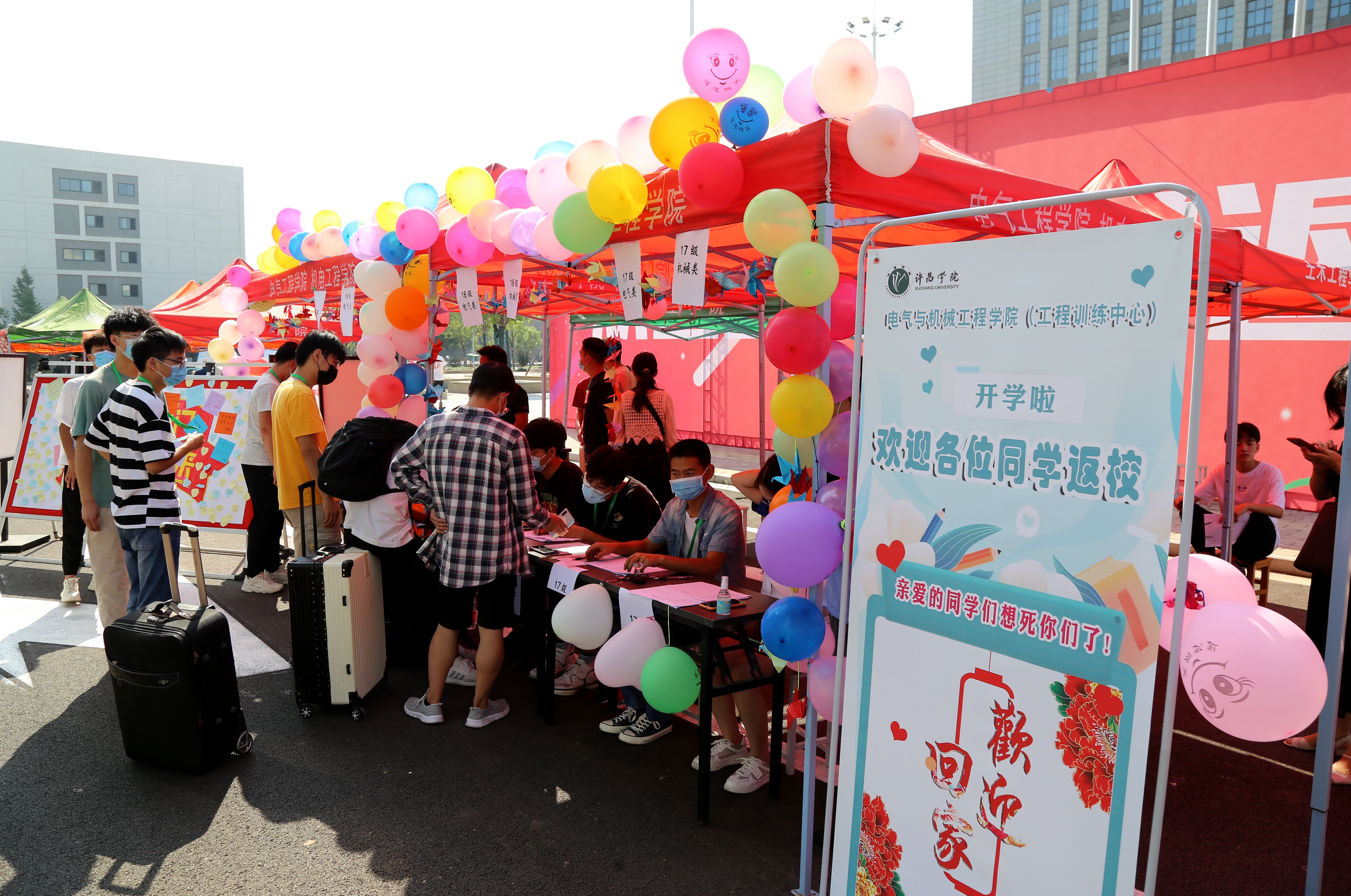 “报到处精心布置的各色气球、千纸鹤、剪纸;展板上领导和老师们手写的深情寄语,寝室门上张贴的欢迎回家海报,这一切真是太暖心了,让我有种离开家又回到家的感觉。”电气与机械工程学院的19级同学王浩哲说,“阔别8个月的校园,终于回来了!太激动也太感动了。”
