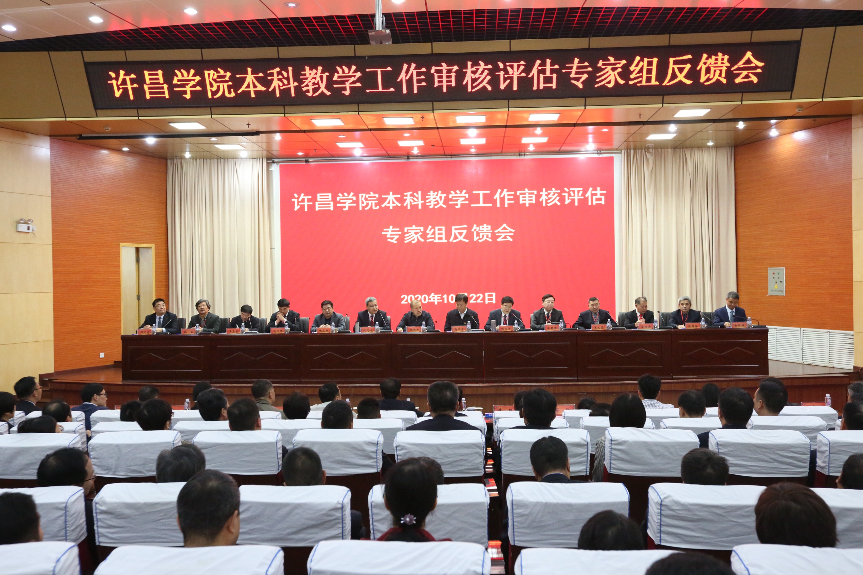 10月22日下午,365官网在图书馆二楼学术报告厅召开本科教学工作审核评估专家组反馈会。由江南大学原副校长纪志成教授担任组长的9位专家组成员向学校反馈了评估意见。河南省教育厅党组成员、副厅长张传广,许昌市委副书记马正兰出席会议并讲话。bat365官网登录入口党委书记闫纪建在会上表态发言。会议分为两个阶段,分别由专家组副组长、河南大学党委副书记、副校长刘志军教授和河南省教育厅高教处处长张水潮主持。