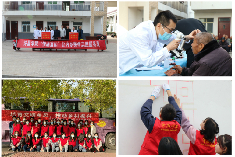九九重阳节,浓浓敬老情。为弘扬中华民族尊老敬老的传统美德,营造“敬老孝老、厚德仁爱”的浓厚氛围,10月25日,365官网师生来到学校定点扶贫村许昌市建安区艾庄乡袁庄村、结对帮扶地南阳市内乡县,许昌市老年公寓等地开展敬老爱亲、慰问老兵等系列志愿服务活动。