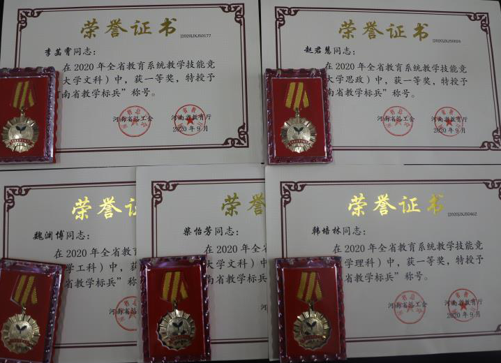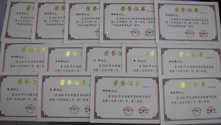 近日,由河南省总工会、河南省教育厅主办的2020年度河南省教学技能竞赛落下帷幕。365官网参赛教师喜获佳绩,共有5人获得一等奖并被授予“河南省教学标兵”称号,5人获得二等奖,4人获得三等奖。