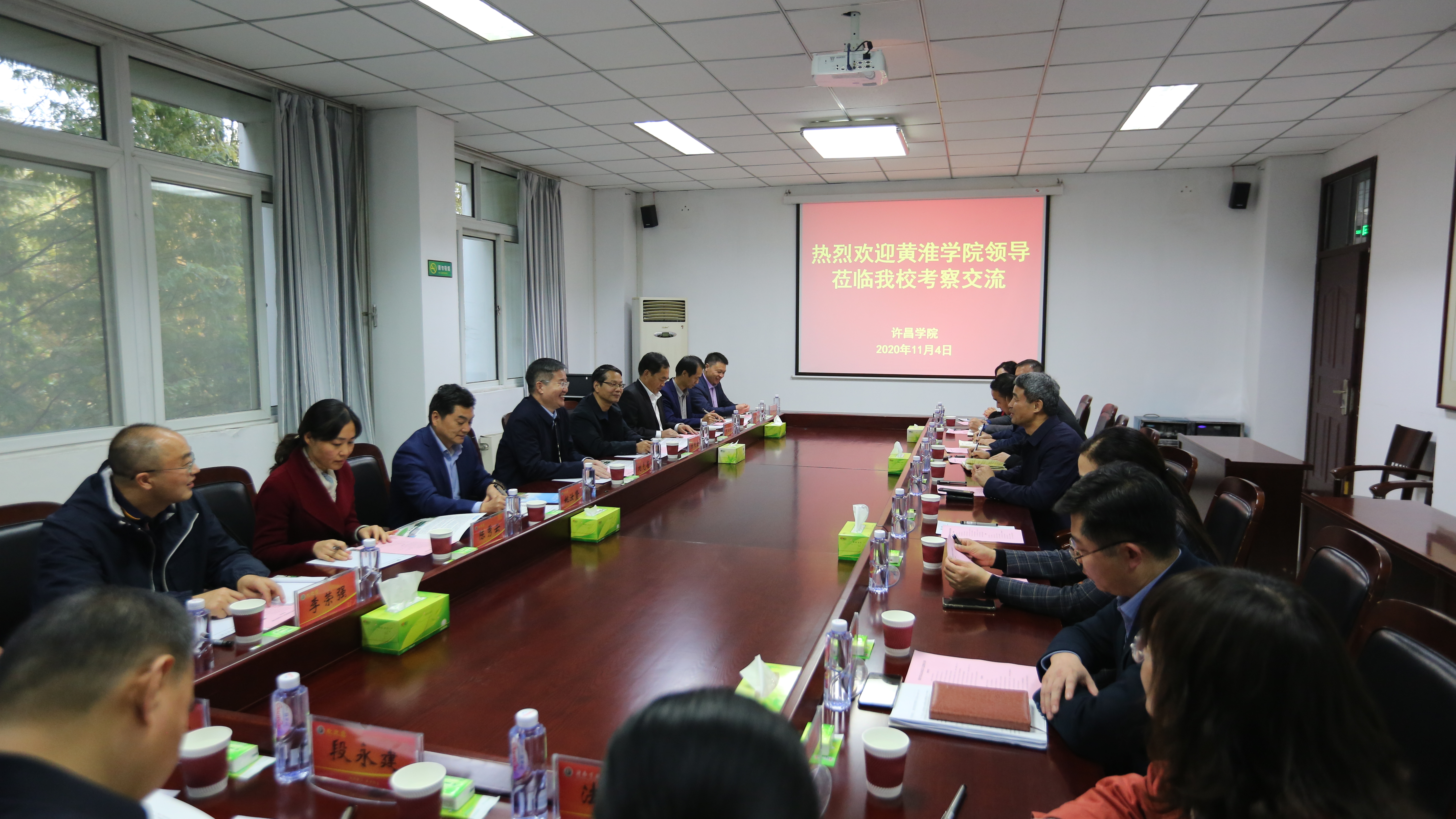 11月4日下午,黄淮学院校长刘先省带领相关职能部门、二级学院负责人到365官网考察交流。院长岳修峰热情接待了来访客人,并与考察团一行深入座谈交流。