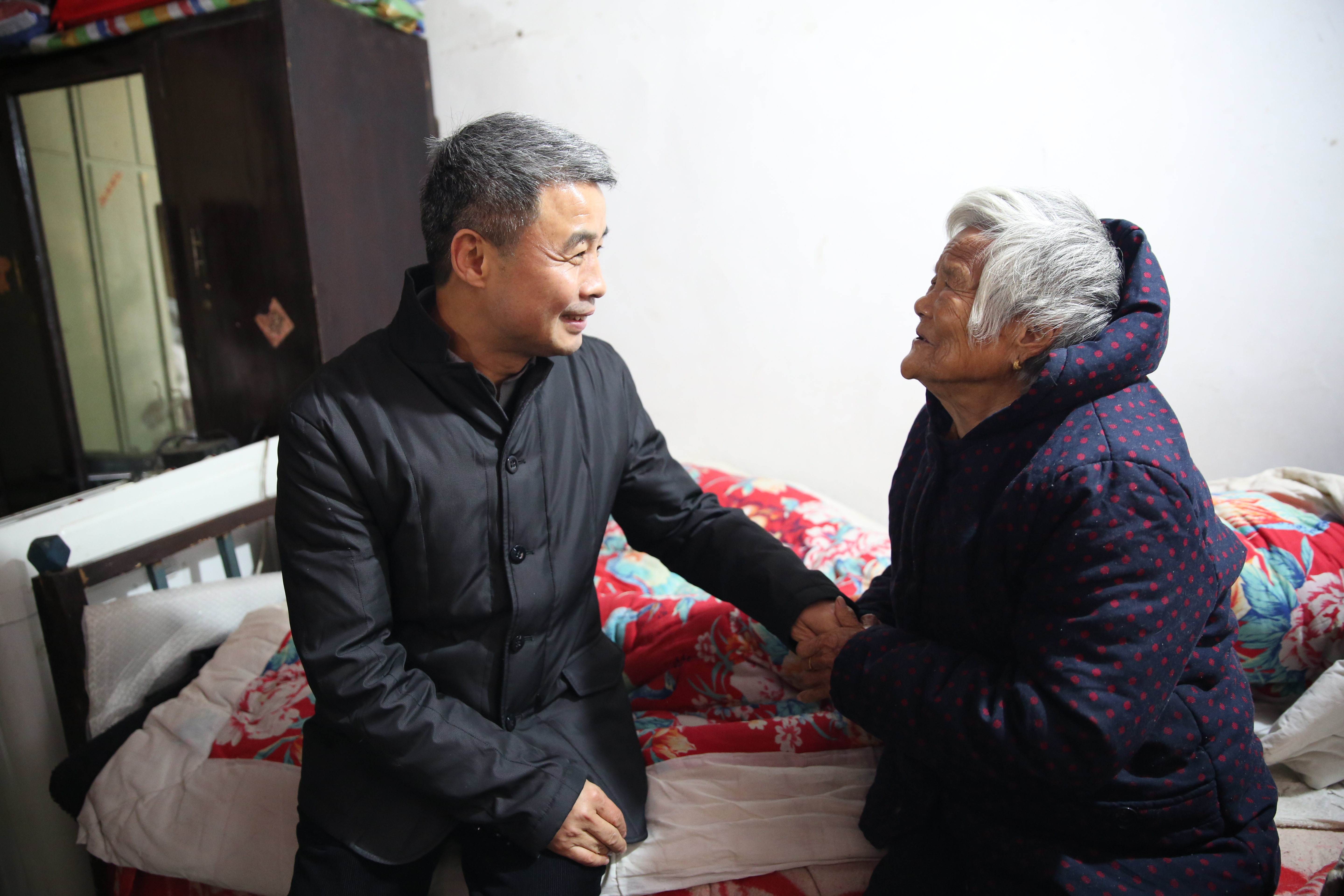 岳修峰院长来到困难群众袁喜增家中,详细了解老人生活情况和实际困难,宣讲党的扶贫政策,嘱咐老人保重身体。岳院长一行还到袁庄村文化广场、袁庄日间照料中心等地进行实地调研。