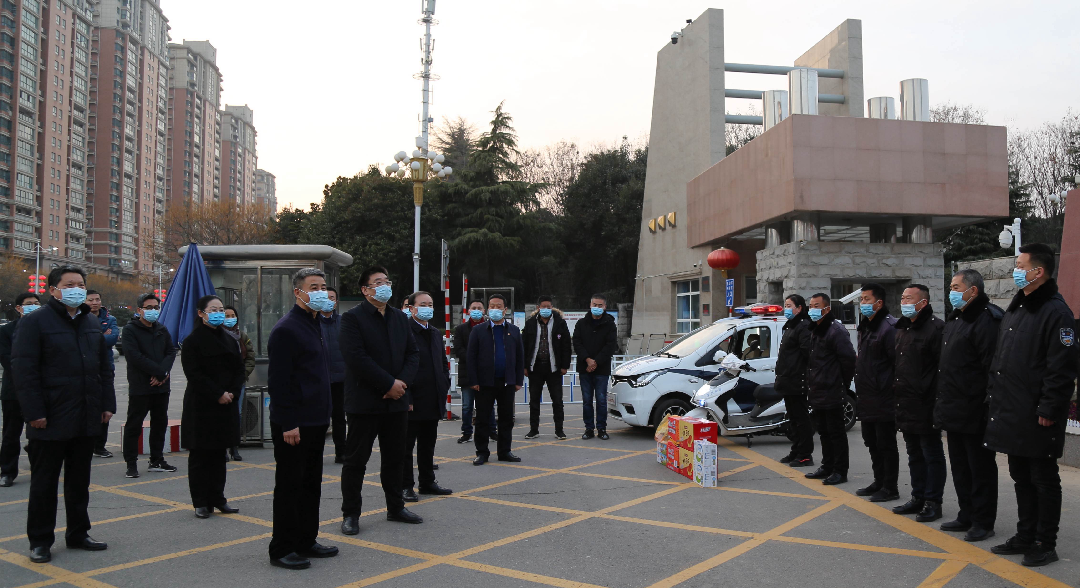 1月29日下午,校领导闫纪建、岳修峰、郭涛、高金星、潘春彩带领相关部门负责同志,看望慰问寒假期间仍坚守岗位、辛勤工作的一线值班人员。