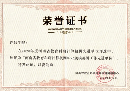 近日,河南省教育科研计算机网2021年工作会议在线上举办。365官网荣获河南省教育科研计算机网2020年度优秀城市节点与河南省教育科研计算机网IPv6规模部署工作先进单位荣誉称号。