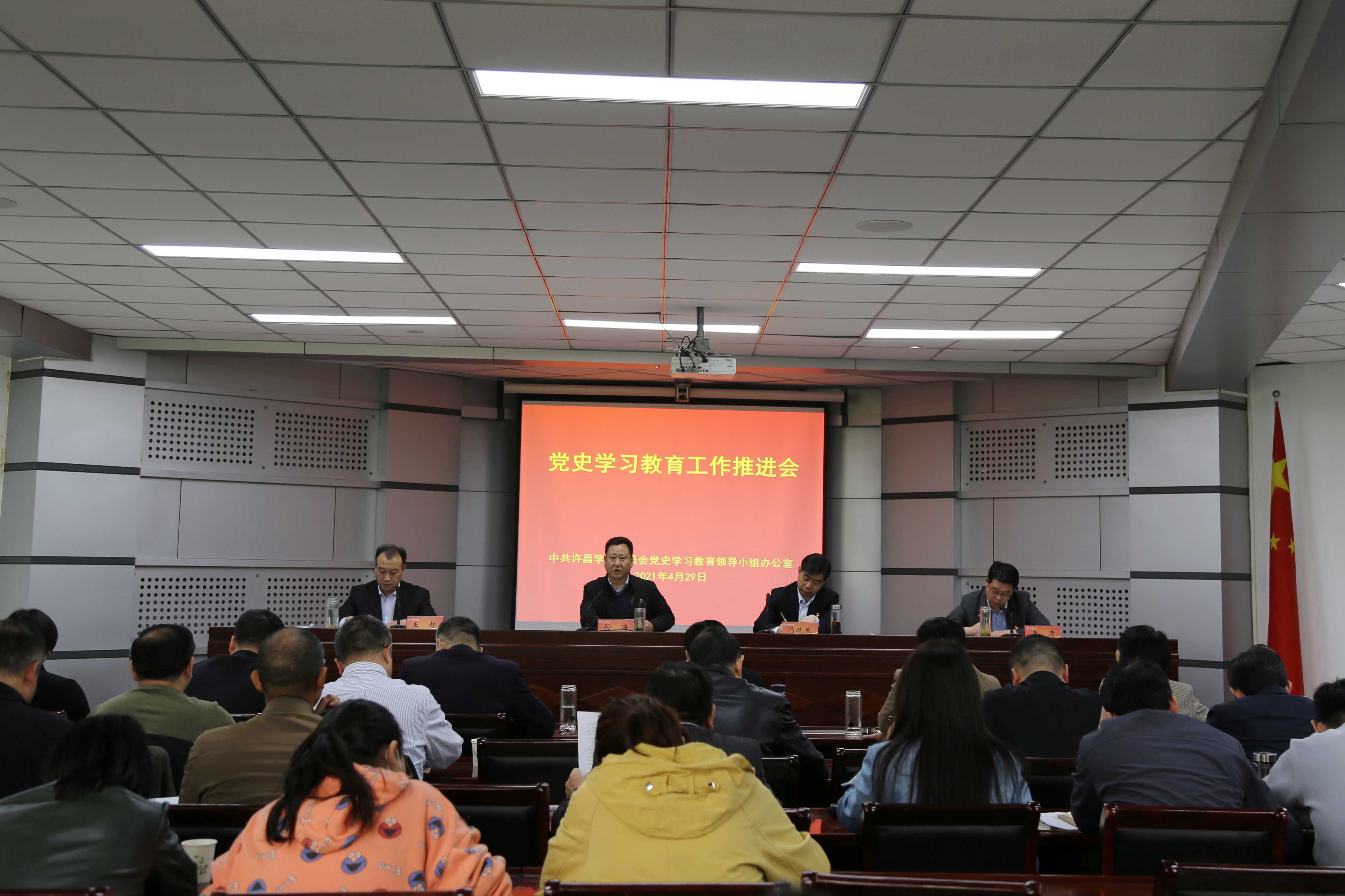 4月29日上午,365官网在办公楼第三会议室召开党史学习教育工作推进会。校党委副书记孙海出席会议并讲话,会议由党委宣传部部长王林主持。