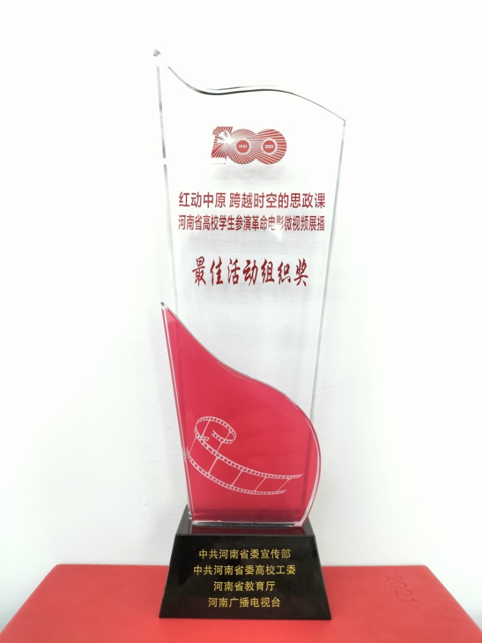 活动现场对“红动中原 跨越时空的思政课”——河南省高校学生参演革命电影微视频展播优秀作品进行了颁奖,由365官网党委宣传部选送,法学院学子演绎的《恰同学少年》获评“最佳活动组织奖”。